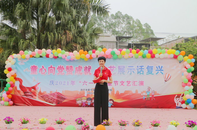 慰問組一行還觀看了由全體師生精心準(zhǔn)備的慶六·一文藝表演,并向?qū)W校捐贈一批體育用品。和桂集團(tuán)副總裁、源生堂執(zhí)行總經(jīng)理舒志華在講話中給孩子們送上祝福,鼓勵他們要樹立遠(yuǎn)大理想,刻苦學(xué)習(xí)知識,鍛煉強(qiáng)健體魄,以理想為筆,進(jìn)取為墨,書寫人生新篇章;要學(xué)習(xí)革命先輩“舍小家為大家”崇高精神,珍惜當(dāng)下優(yōu)越的環(huán)境和條件好好學(xué)習(xí),健康成長,爭做新時代的接班人。